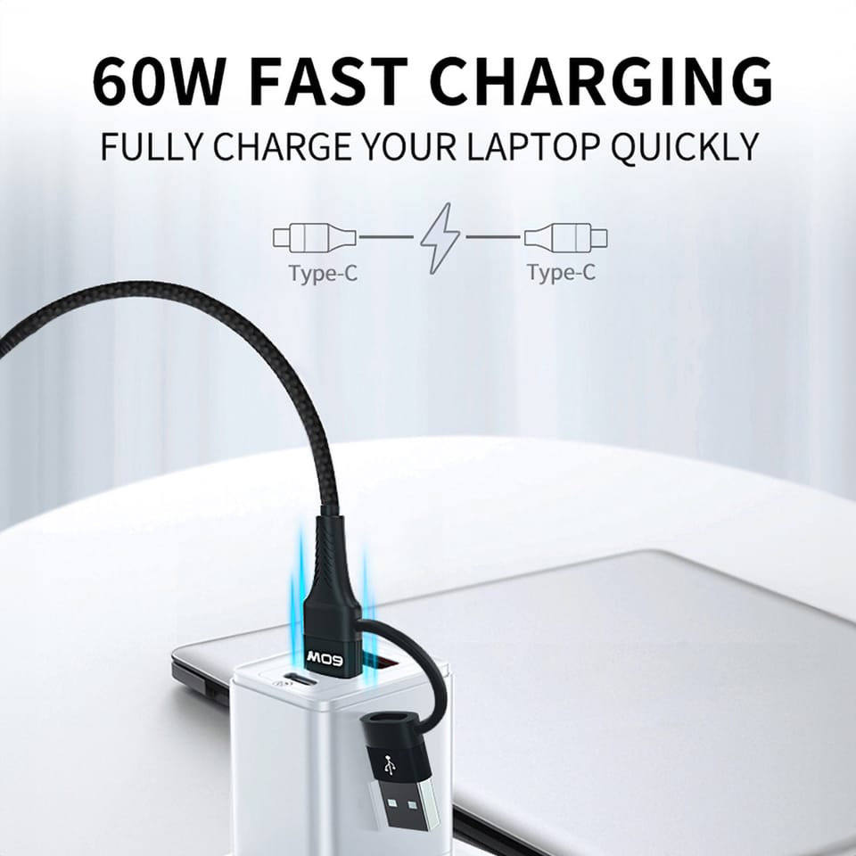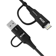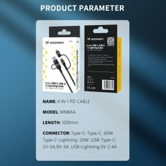 - - 4w1 Uniwersalny kabel przewód 2x USB-C 1x USB-A 1x Lightning 60W 1m czarny