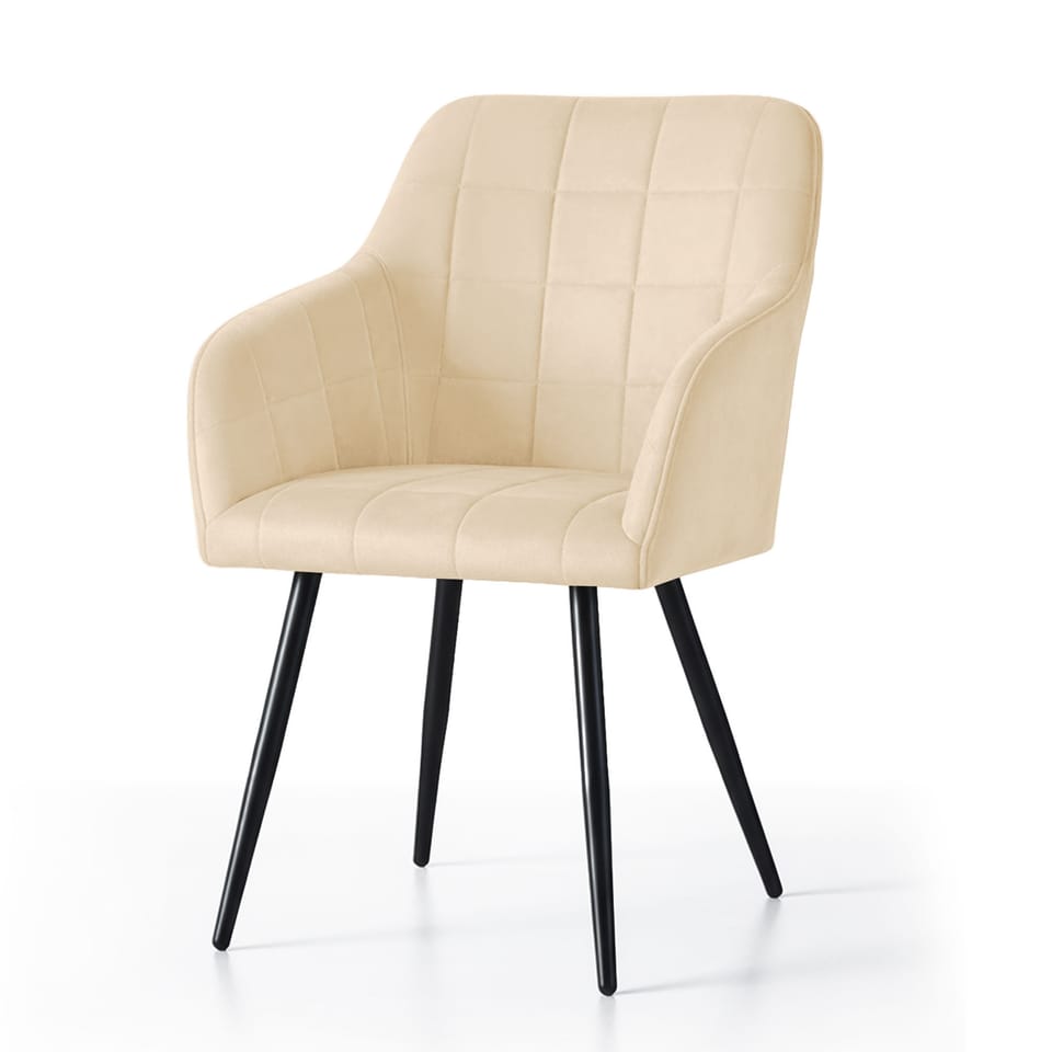 4x Krzesło tapicerowane z przeszyciami kwadratowymi Beżowe LUXANO Czarne nogi