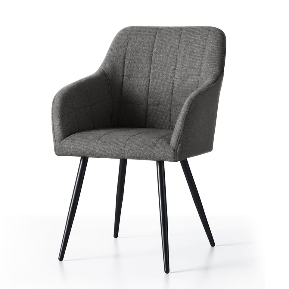4x Krzesło tapicerowane z przeszyciami kwadratowymi Ciemny Grafit LUXANO Czarne nogi tkanina Lumos