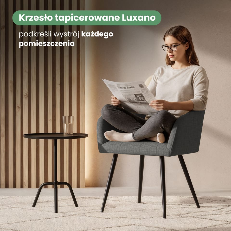Krzesła tapicerowane łączą estetyczny wygląd z komfortem użytkowania i dobrze wpisują się w różne style wnętrz. Ich uniwersalna forma sprawia, że są odpowiednie do jadalni, salonu lub przestrzeni biurowej. Dostępne są w dwóch wariantach materiałowych – w tkaninie Lumos lub w welurze.