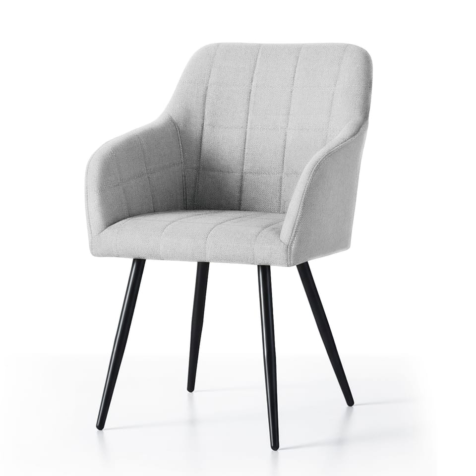 4x Krzesło tapicerowane z przeszyciami kwadratowymi Jasny Szary LUXANO Czarne nogi tkanina Lumos