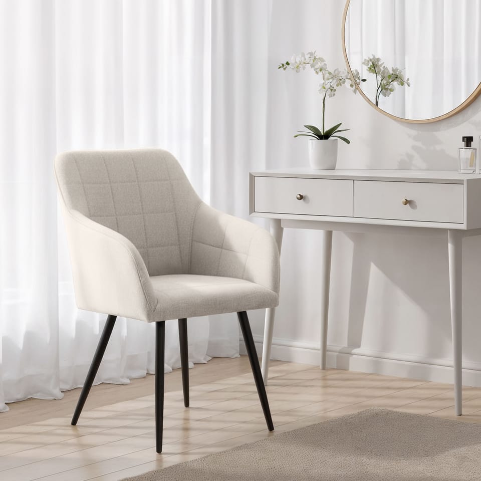 4x Krzesło tapicerowane z przeszyciami kwadratowymi Kremowe LUXANO Czarne nogi tkanina Lumos