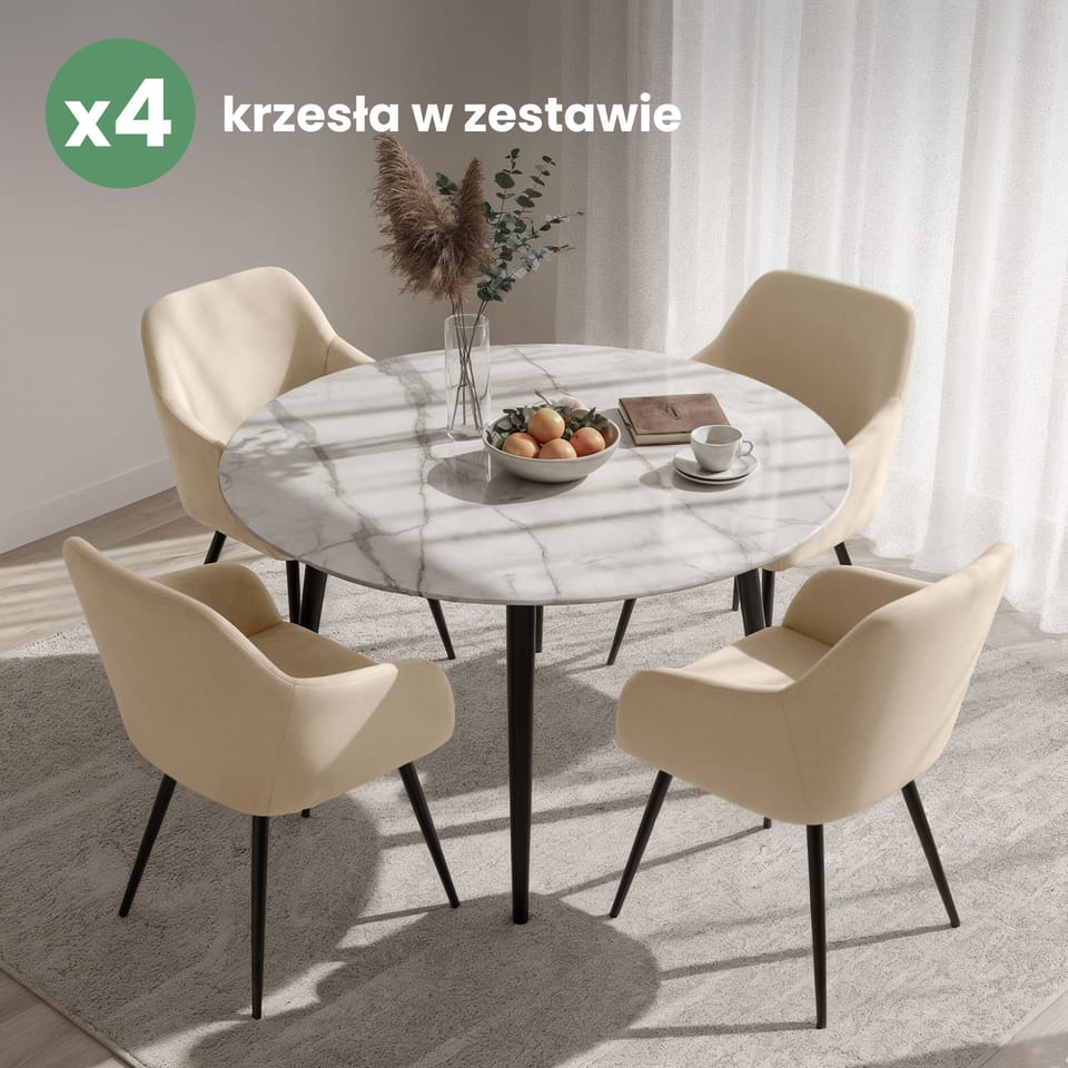 4x Welurowe krzesło tapicerowane gładkie Beżowe ESTELLE Czarne nogi