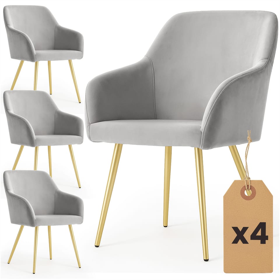 4x Welurowe krzesło tapicerowane gładkie Szare ESTELLE Złote nogi