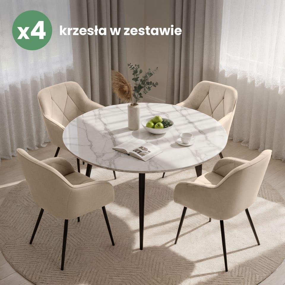 4x Welurowe krzesło tapicerowane pikowane Beżowe DIAMANTE Czarne nogi