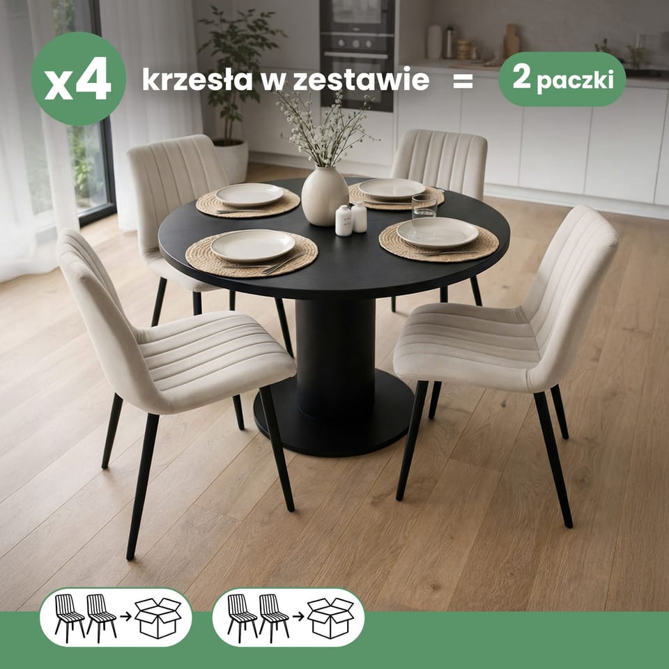 4x Welurowe krzesło tapicerowane pikowane Beżowe LIVO Czarne nogi