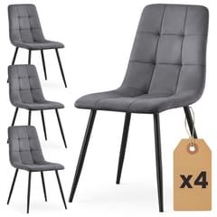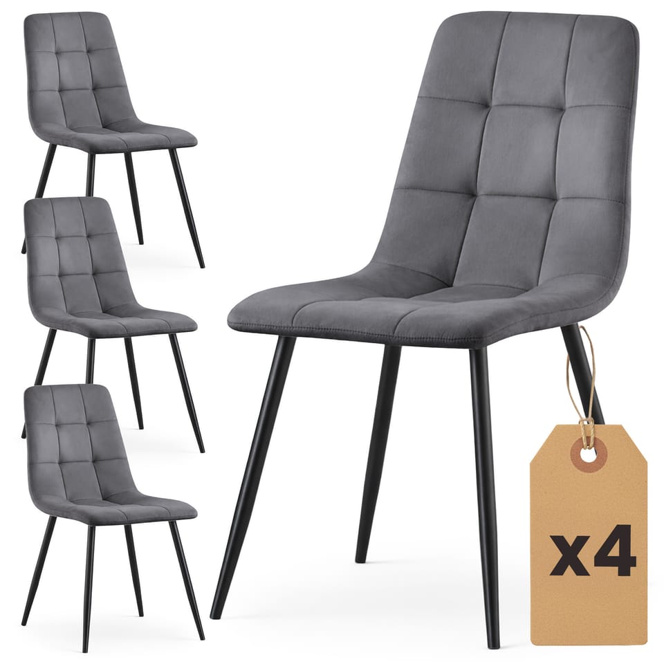 4x Welurowe krzesło tapicerowane pikowane Ciemny Grafit NERO Czarne nogi