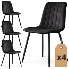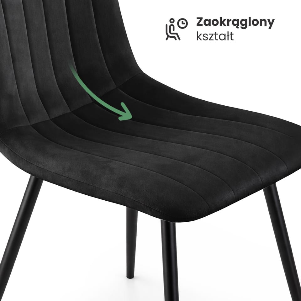 4x Welurowe krzesło tapicerowane pikowane Czarne LIVO Czarne nogi