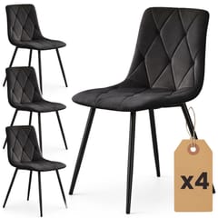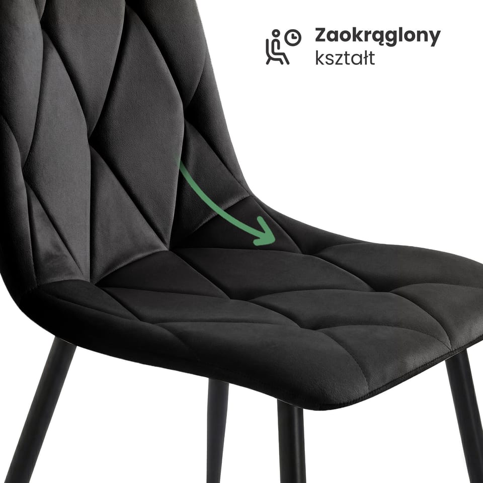 4x Welurowe krzesło tapicerowane pikowane Czarne MILO Czarne nogi