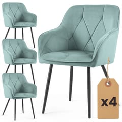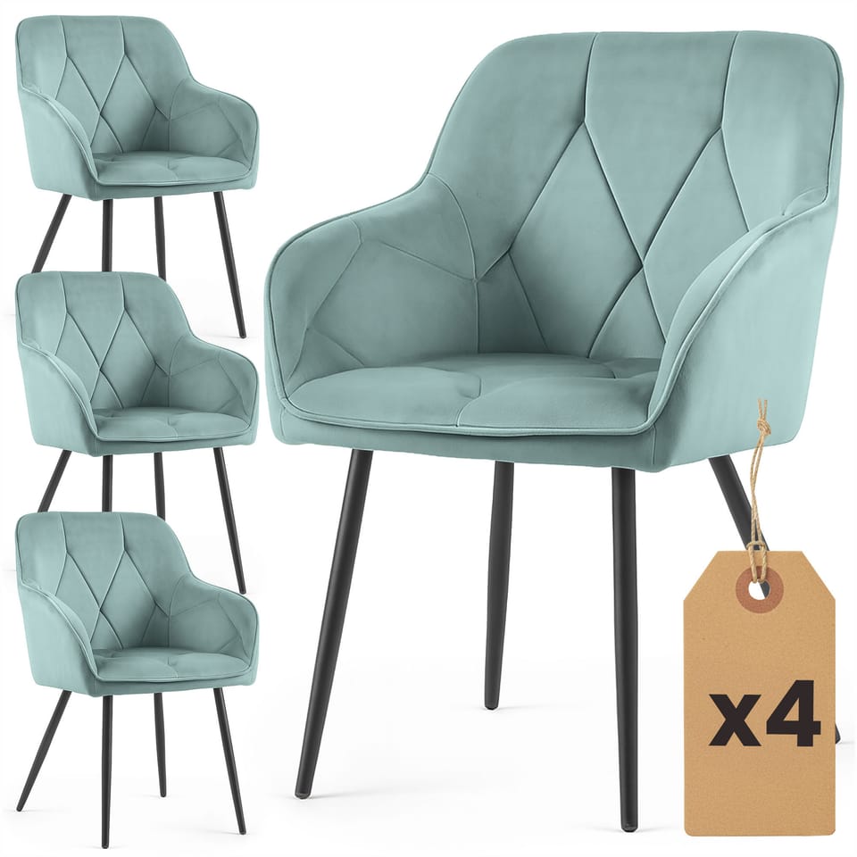 4x Welurowe krzesło tapicerowane pikowane Turkusowe DIAMANTE Czarne nogi