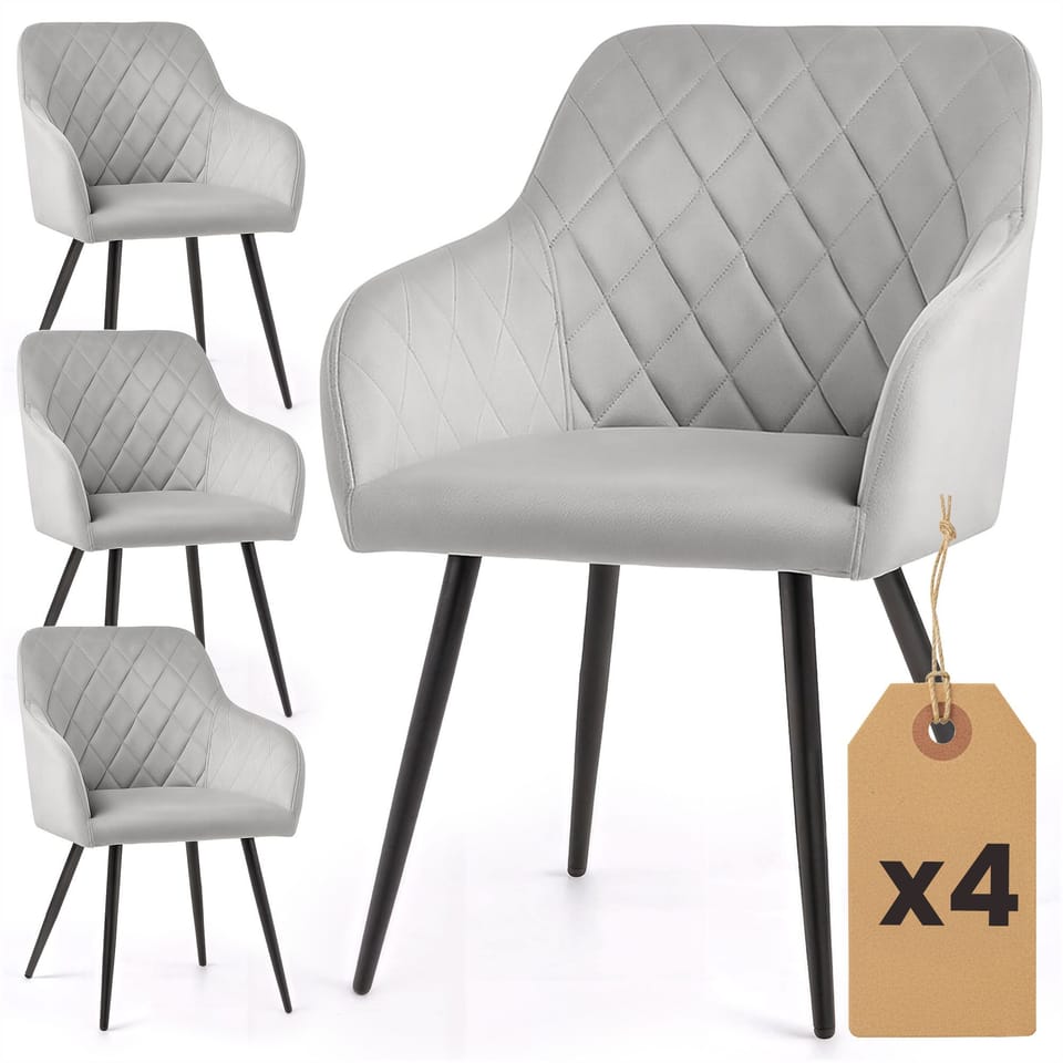 4x Welurowe krzesło tapicerowane pikowane w romby Szare VELTO Czarne nogi