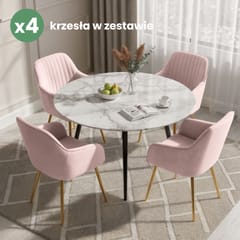 4x Welurowe krzesło tapicerowane z przeszyciami Pudrowy Róż FLORENCE Złote nogi
