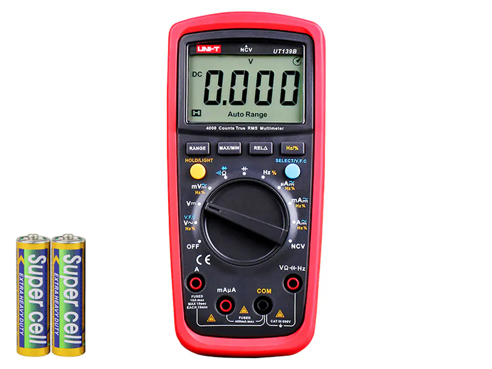 - W zestawie: miernik, baterie, przewody pomiarowe