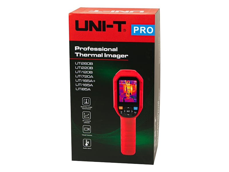 Uni-t UTI260B to profesjonalna termowizyjna kamera przemysłowa pozwalająca na zlokalizowanie mostkw termicznych, zweryfikowanie poprawności uszczelnień, czy ociepleń. Kamera łączy pomiar temperatury powierzchni z obrazami termowizyjnymi w czasie rzeczywistym, ktre są wyświetlane na ekranie przez kamerę termowizyjną. Obiektyw światłapodczerwonegoo rozdzielczości256x192pozwala rejestrować na karcie pamięci wszelkie pomiary.
