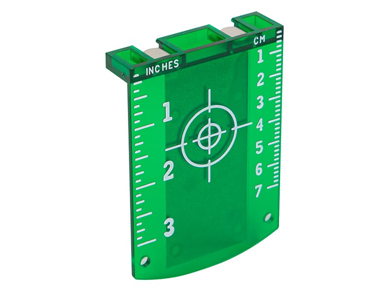 Tarcza celownicza pomaga zwiększyć widoczność wiązki lasera, dzięki temu pomiary są jeszcze dokładniejsze. Tarcza została wyposażona w 2 magnesy dzięki którym jesteśmy w stanie zamonitować ją w trudno dostępnych miejscach .