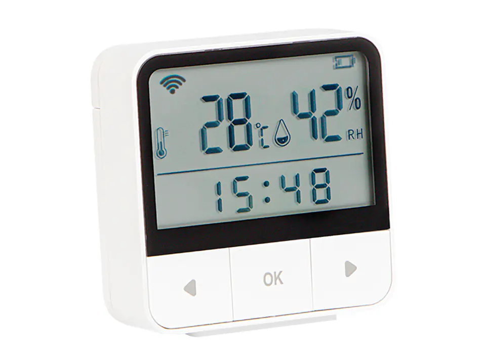 Czujnik temperatury i wilgotności można zawiesić i umieścić w dowolnym miejscu bez zajmowania miejsca, na stolikach nocnych, biurkach, biurach, z wiszącymi otworami z tyłu, na ścianach lub za drzwiami.