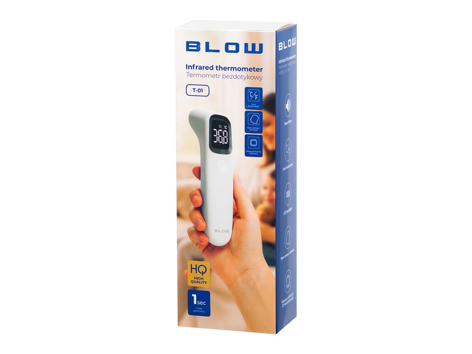 - Pomiar temperatury na czole, w ucho oraz temperatury otoczenia i przedmiotw (np. mleka w butelce)