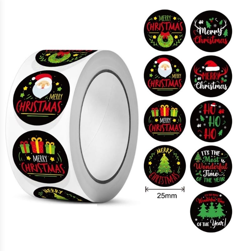 500 sztuk naklejek Boże Narodzenie na taśmie średnica 25mm dekoracyjne naklejki samoprzylepne etykiety NNK17