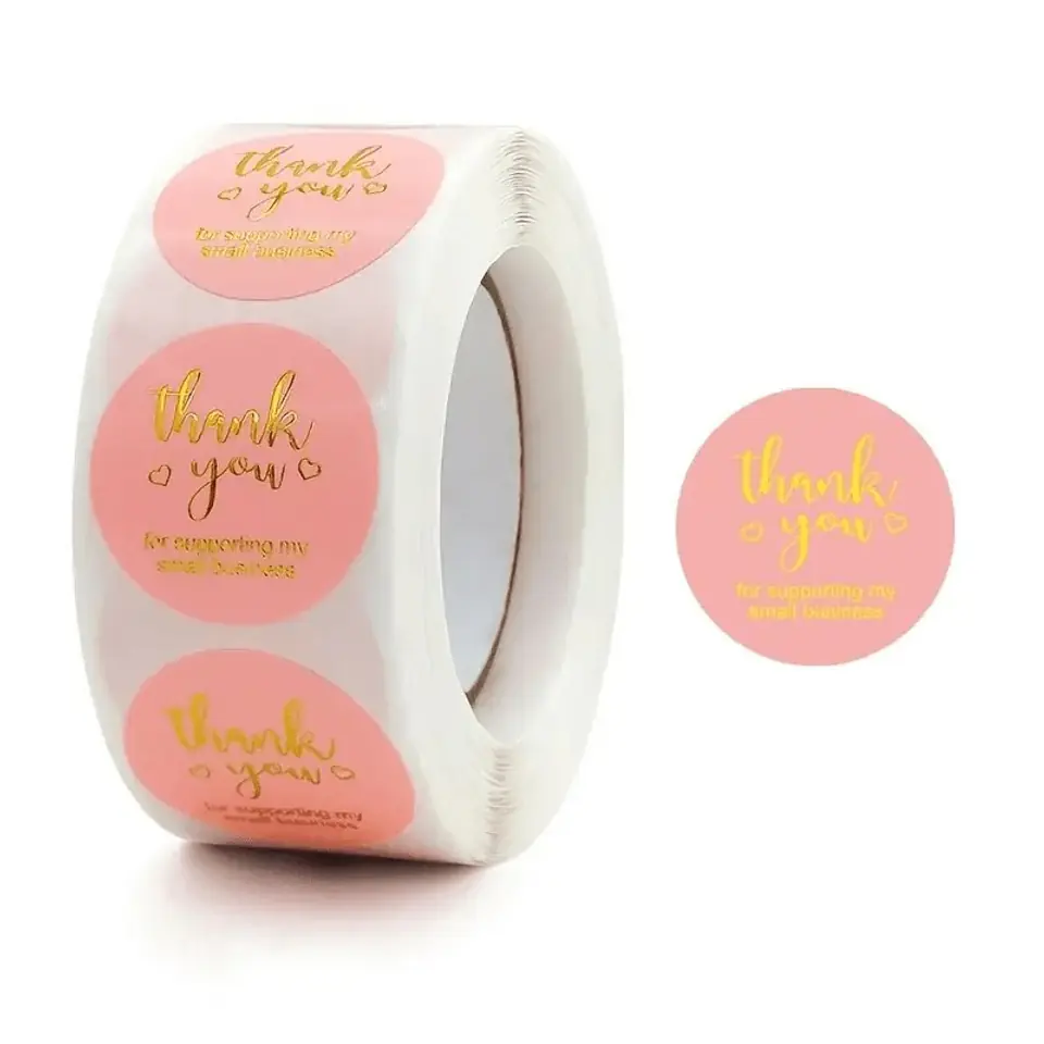 500 sztuk naklejek THANK YOU na taśmieNaklejki ozdobne, etykiety samoprzylepneCena za zestaw 500 naklejek - rolka Dane produktu:Wymiar naklejek: koło 25 x 25 mmWaga: 48gMateriał: papierowe
