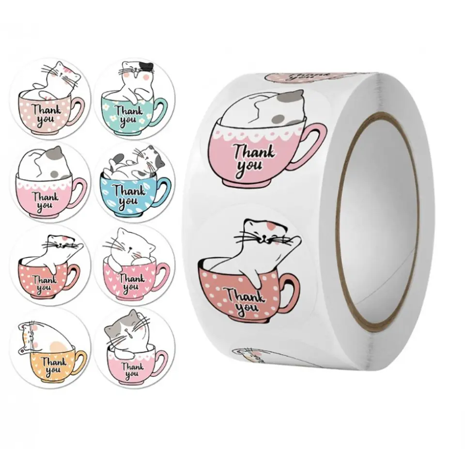 500 sztuk naklejek THANK YOU z kotem na taśmie średnica 25mm dekoracyjne naklejki samoprzylepne etykiety NNK09
