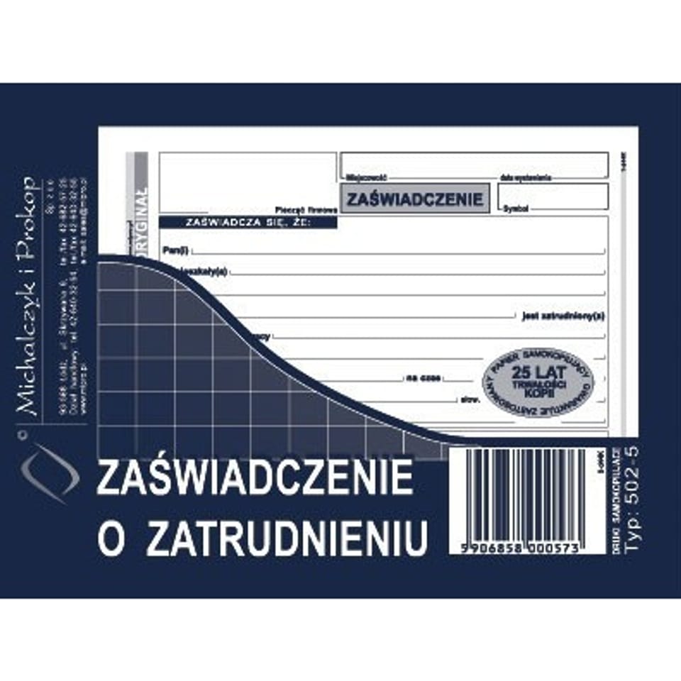 502-5 Zaświadczenie o zatrudnieniu A6 80kartek Michalczyk i Prokop