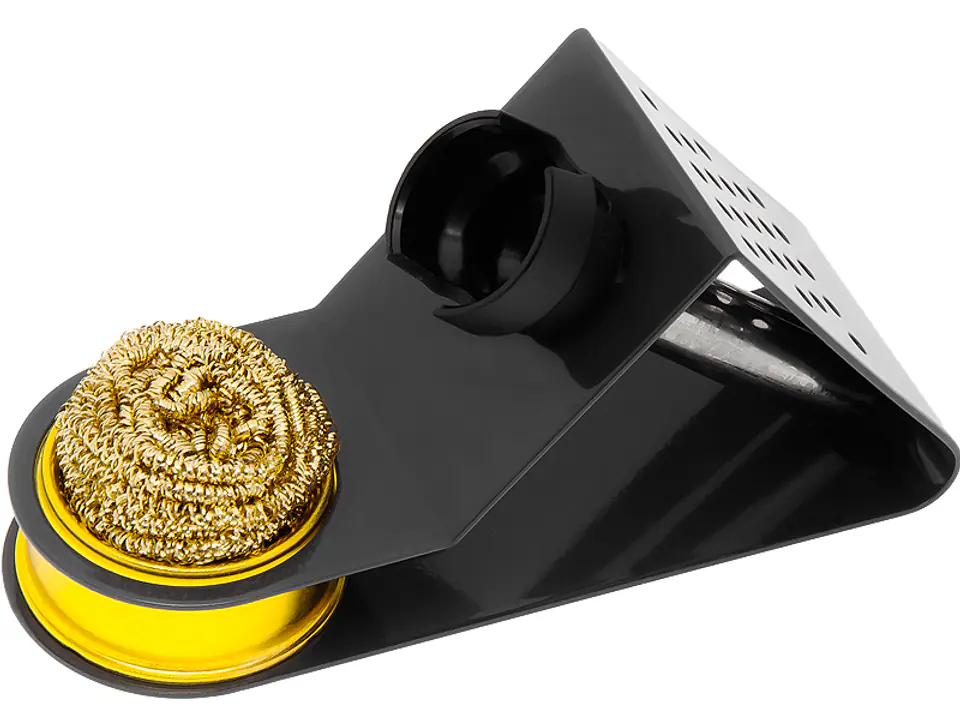 Wysokiej jakości podstawka lutownicy z czyścikiem metalowym. Uchwyt ułatwia i usprawnia pracę podczas lutowania. Metalowa budowa podstawy gwarantuje, że będzie ona stabilna pod ciężarem kolb lutowniczych.