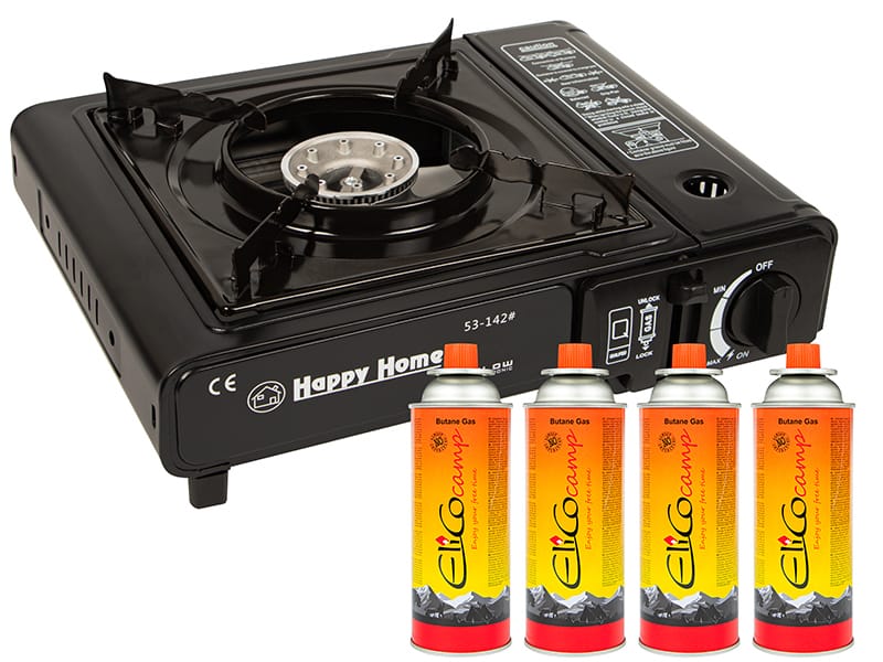 Kuchenka gazowa o mocy 2200W. Zasilana standardowymi kartuszami gazowymi typu TS-700 lub butlą gazową (przejściwka w zestawie). W łatwy sposb można podłączyć kartusz, a następnie wymienić go po zużyciu na nowy. Kuchenka posiada wbudowany automatyczny zapalnik piezoelektryczny, do jej odpalenia nie są potrzebne zapałki ani zapalniczka. Dodatkowo posiada pokrętło regulacji płomienia oraz suwak z regulacją dopływu gazu.
