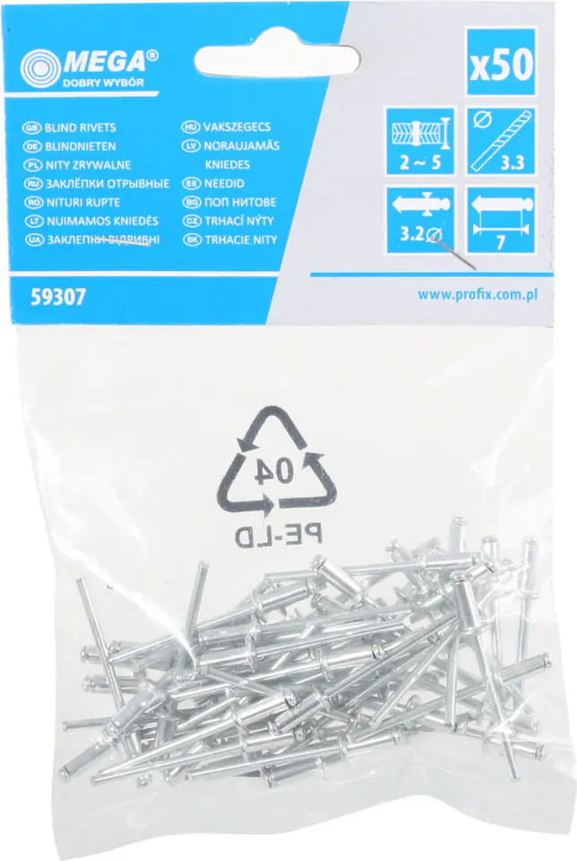 59307 Nit aluminiowy zrywalny 3,2x7,4mm 50 sztuk, Mega
