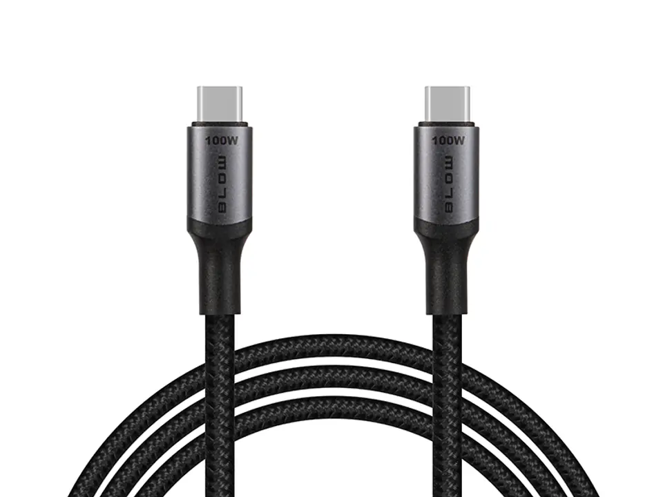 Kabel USB-C - USB-C. Obsługuje standardy szybkiego ładowania Power Delivery i Quick Charge 4.0 oraz transmisję danych 480Mbs. Został zaprojektowany, aby przetrwać długie i intensywne użytkowanie. Zastosowany specjalny oplot zapobiega przecieraniu i łamaniu się kabla.