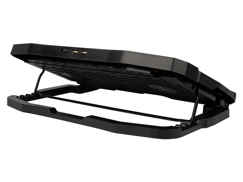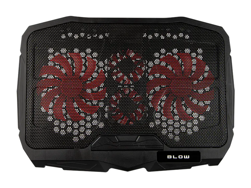 Gamingowa podkładka BLOW HURRICANE dzięki aż czterem wentylatorom chłodzącym zapewni optymalną temperaturę laptopa. Usuwając ciepło wytwarzane pod spodem notebooka, chłodzi go i obniża temperaturę pracy jego podzespołów co zapewnia stabilną oraz dłuższą żywotność najważniejszych podzespołów komputera. Podkładka wyposażono w czerwone podświetlenie, które nadaje nowoczesny charakter i wzbudza zainteresowanie każdego gracza. Ponadto wbudowany hub USB ułatwia podłączenie dodatkowych urządzeń i nie zajmuje miejsca na biurku. Solidnie wykonana, wytrzymała konstrukcja z łatwością utrzymuje ciężar notebooka.