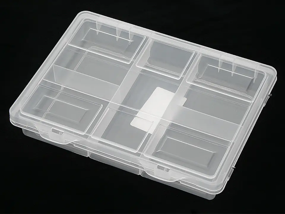 Organizero 9 podłużnych przegrdkach. Wygodny, uniwersalny pojemnik na domowe drobiazgi, akcesoria wędkarskie, śrubki, leki, płprodukty do wyrobu biżuterii. Lista jego możliwych zastosowań jest zresztą nieskończona. Dzięki transparentnej powierzchni nie trzeba go otwierać,by zobaczyć, co jest w środku.