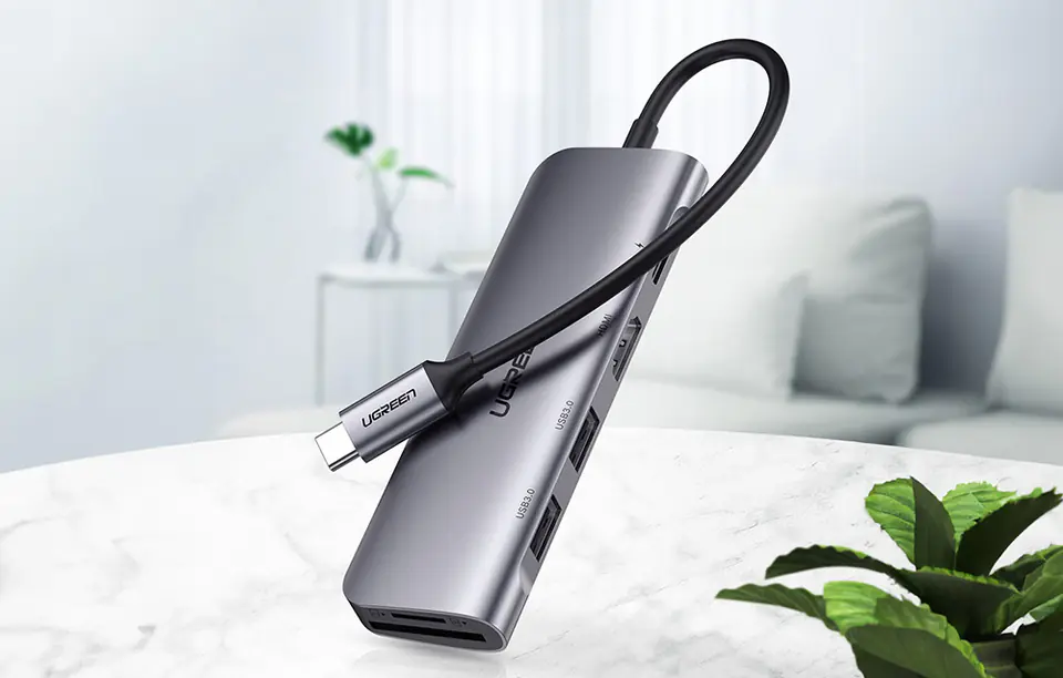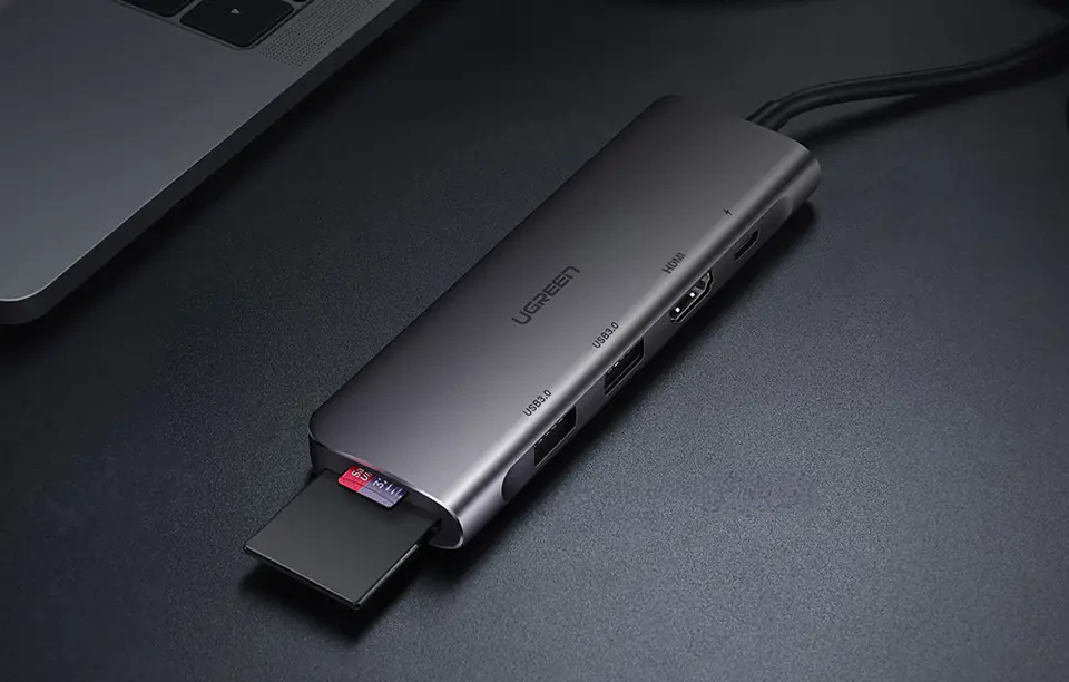 Kod produktu: 1027605Adapter Ugreen CM195 to idealne rozwiązanie dla każdego, kto chce rozszerzyć możliwości swojego laptopa czy komputera z portem USB-C. Ten zaawansowany adapter pozwala na podłączenie wielu urządzeń jednocześnie, dzięki czemu praca staje się bardziej efektywna. Wyposażony w złącza 2x USB-A 3.0, USB-C, HDMI oraz czytniki kart SD i TF zapewnia błyskawiczny transfer danych i doskonałą jakość obrazu. Dzięki kompaktowej konstrukcji i eleganckiej aluminiowej obudowie adapter jest nie tylko funkcjonalny, ale również stylowy i trwały.Rozszerzenie możliwości pracyAdapter Ugreen CM195 pozwala na podłączenie wielu urządzeń jednocześnie, co znacznie zwiększa efektywność pracy. Dzięki portom 2 x USB-A 3.0, USB-C, HDMI oraz czytnikom kart SD i TF możesz łatwo przesyłać dane, podłączać urządzenia peryferyjne i cieszyć się doskonałą jakością obrazu. To idealne rozwiązanie dla profesjonalistów, którzy potrzebują wielu portów w jednym, kompaktowym urządzeniu.Szybki transfer danychDzięki standardowi USB 3.0 adapter Ugreen CM195 zapewnia błyskawiczny transfer danych z prędkością do 5 Gbps. Kompatybilność wsteczna z USB 2.0/1.1 sprawia, że możesz używać go z szeroką gamą urządzeń, nie martwiąc się o różnice w standardach. To doskonały wybór dla osób, które potrzebują szybko przesyłać duże pliki.Niezrównana jakość obrazuAdapter obsługuje rozdzielczość do 4K przy 30Hz, co zapewnia krystalicznie czysty obraz. Wyposażony w HDMI 2.0, HDCP 2.2, HDR10 oraz 3D gwarantuje doskonałe wrażenia wizualne, niezależnie od tego, czy oglądasz filmy, prezentacje czy grasz w gry. Dzięki temu, każda chwila spędzona przed ekranem staje się przyjemnością.Wszechstronne wsparcie dla kart pamięciUgreen CM195 umożliwia jednoczesne korzystanie z kart SD i TF, co jest niezwykle wygodne dla fotografów i osób pracujących z dużą ilością danych. Prędkość transferu wynosząca około 90 Mb/s pozwala na szybkie przenoszenie zdjęć, filmów i innych plików, co znacznie ułatwia codzienną pracę.Zasilanie i ładowanie urządzeńPort zasilania USB-C PD o mocy 100W sprawia, że adapter Ugreen CM195 może jednocześnie zasilać i ładować urządzenia podczas korzystania z niego. To niezwykle praktyczne rozwiązanie, które pozwala na nieprzerwaną pracę bez obaw o wyczerpanie baterii. Idealne dla osób, które potrzebują wydajnego narzędzia do pracy mobilnej.Najważniejsze cechy: