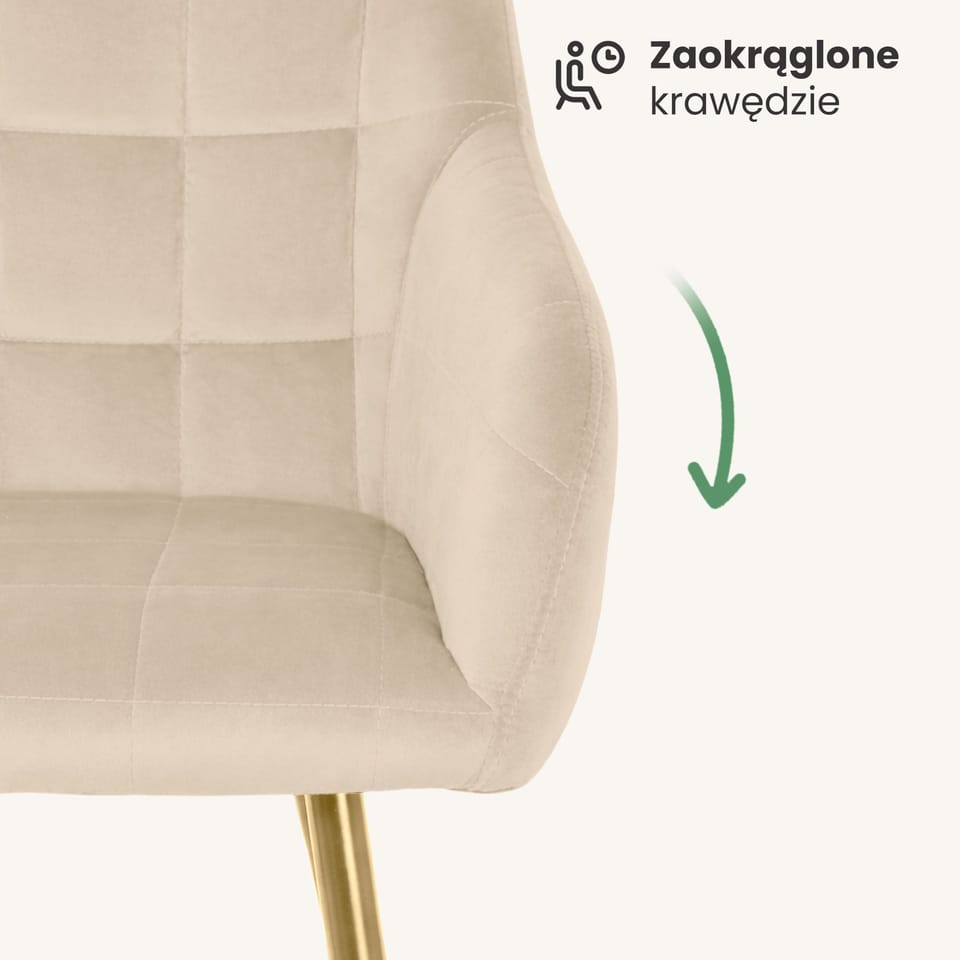 6x Krzesło tapicerowane z przeszyciami kwadratowymi Beżowe LUXANO Złote nogi