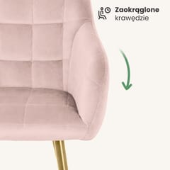 6x Krzesło tapicerowane z przeszyciami kwadratowymi Pudrowy Róż LUXANO Złote nogi
