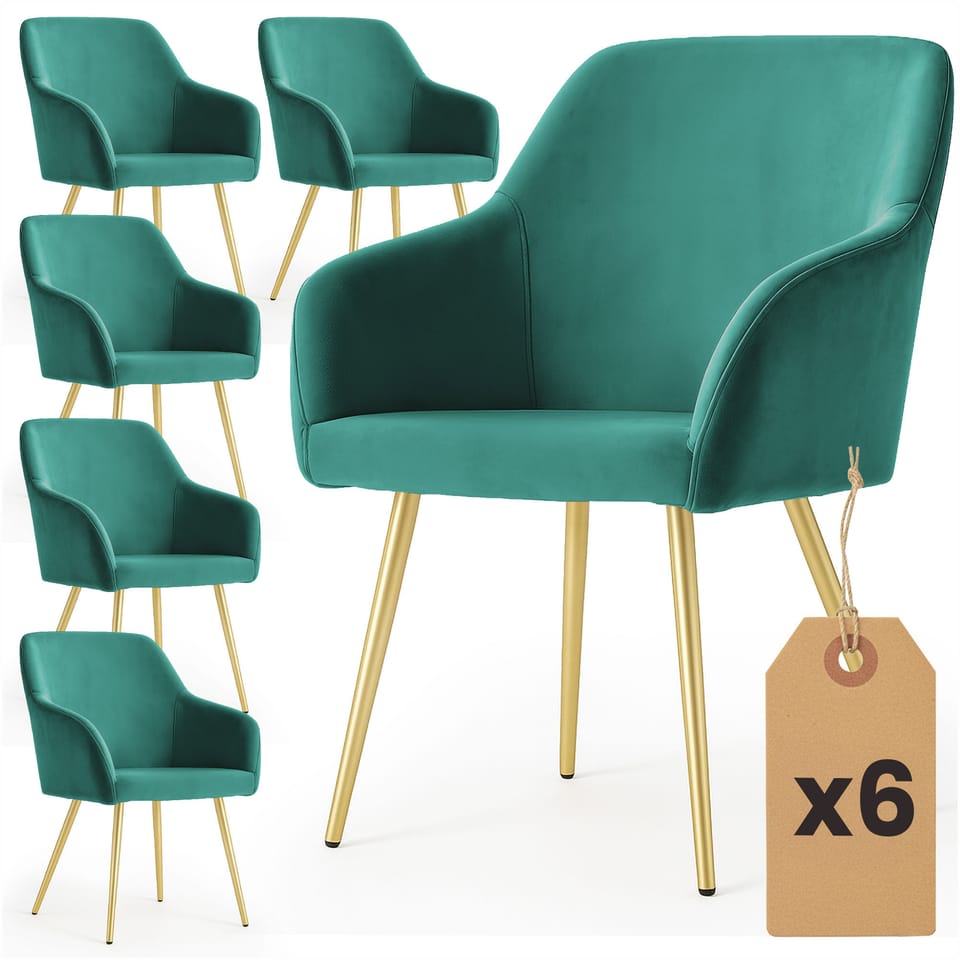 6x Welurowe krzesło tapicerowane gładkie Butelkowa Zieleń ESTELLE Złote nogi