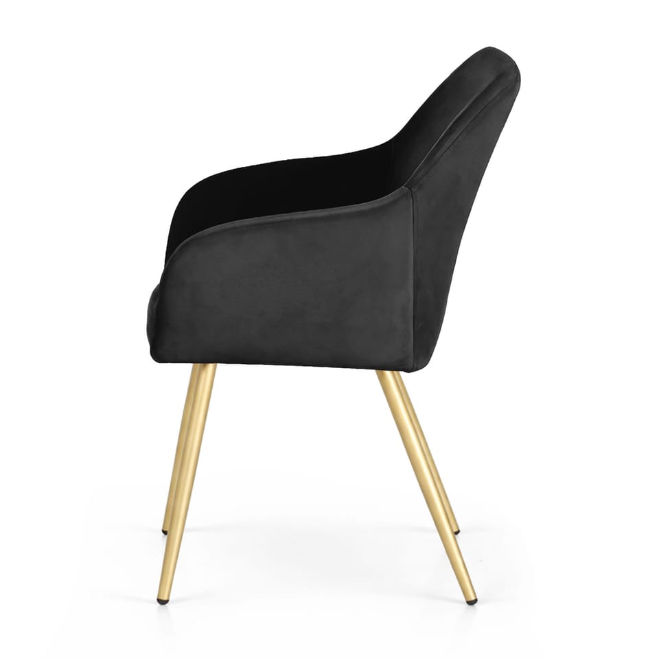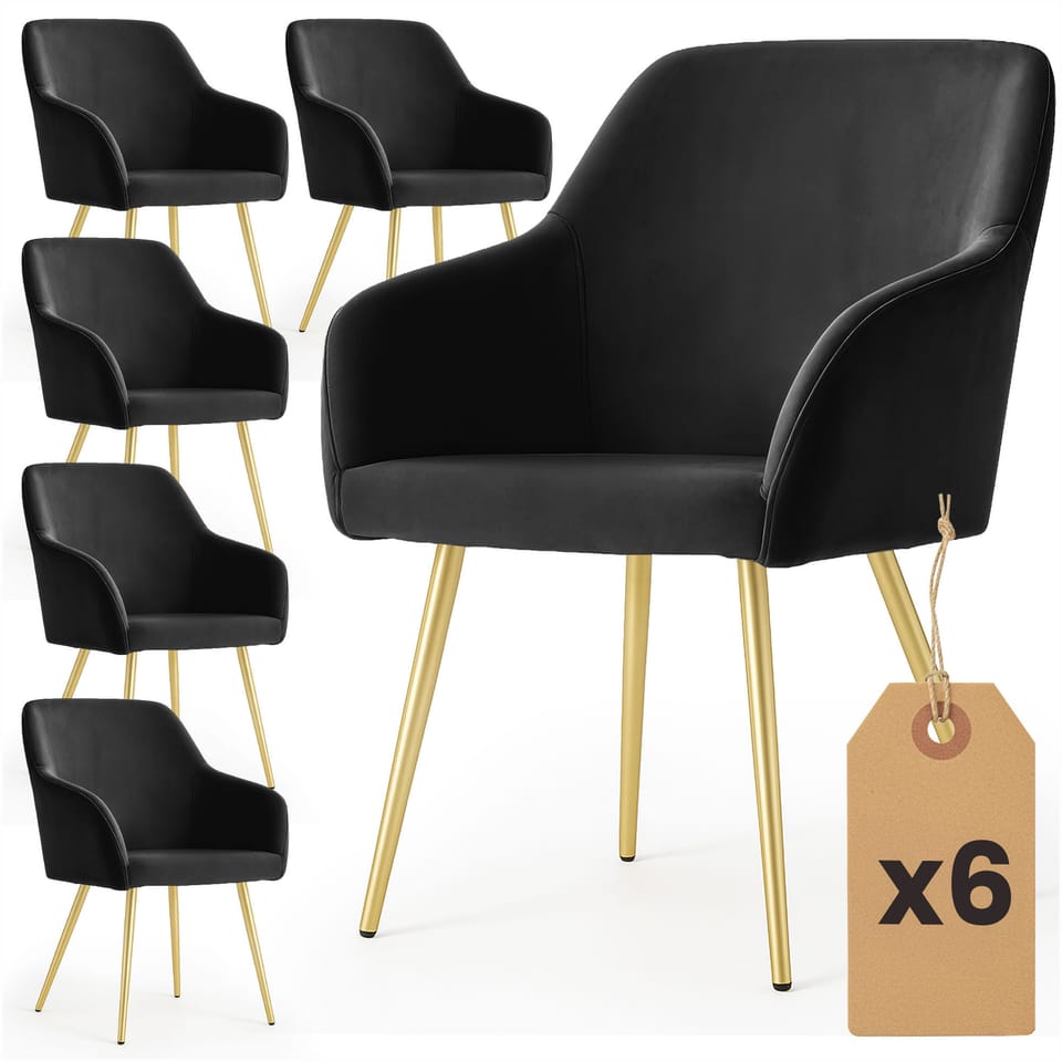 6x Welurowe krzesło tapicerowane gładkie Czarne ESTELLE Złote nogi