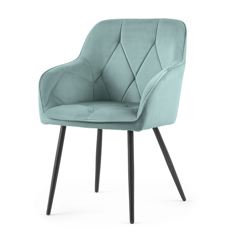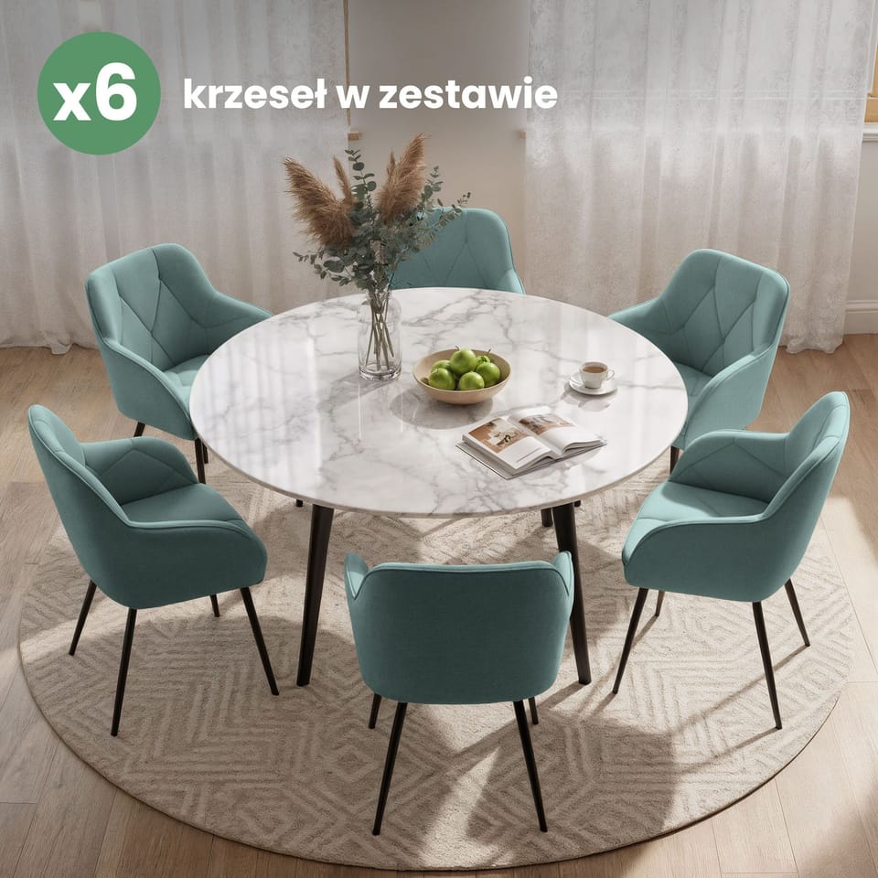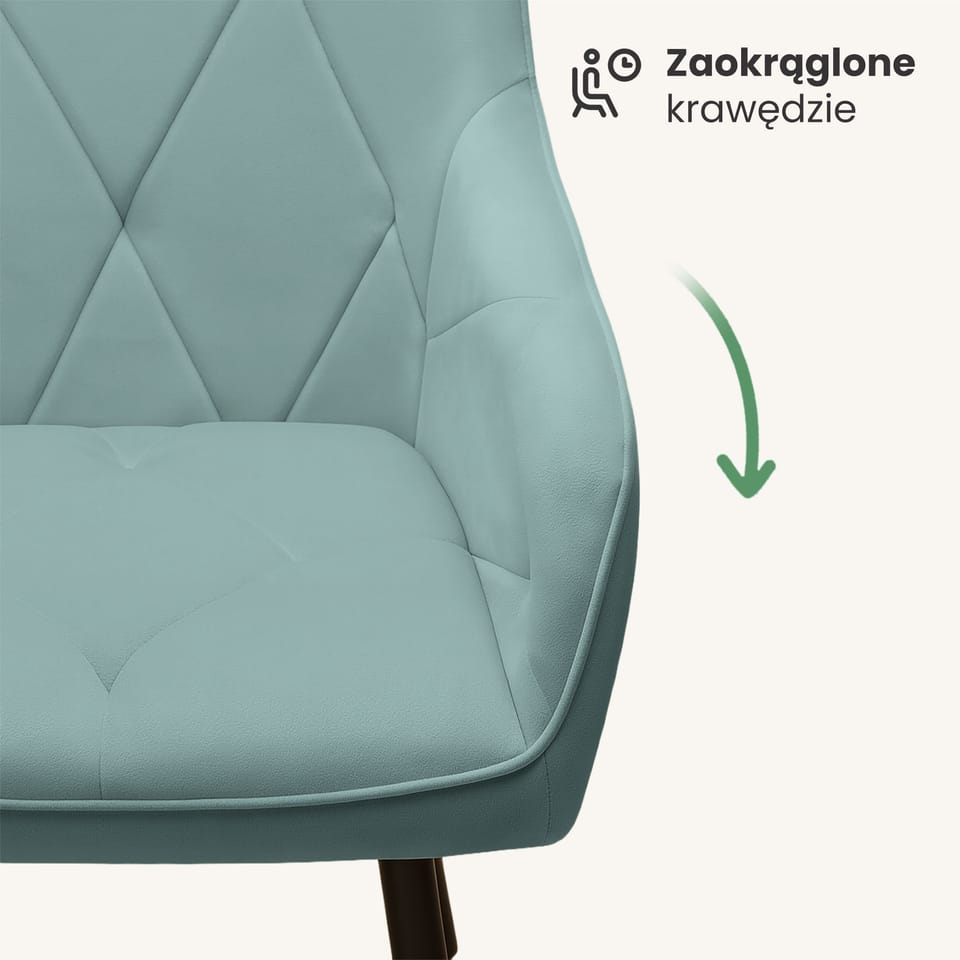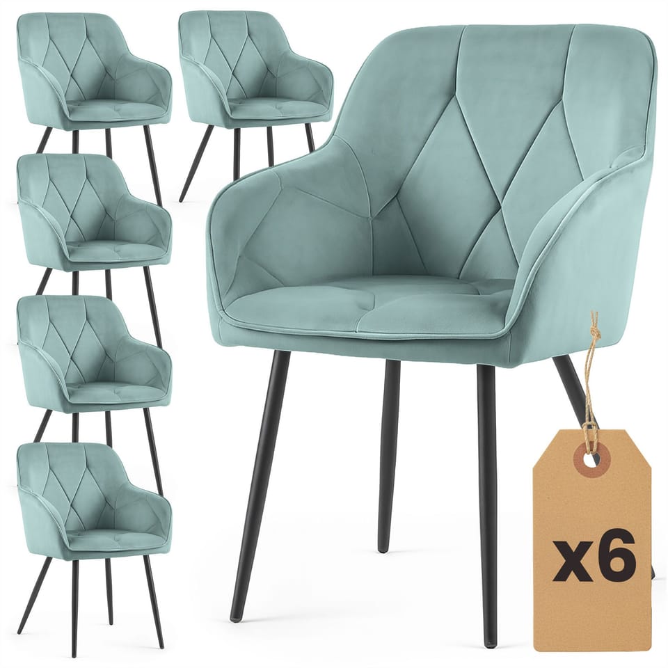 6x Welurowe krzesło tapicerowane pikowane Turkusowe DIAMANTE Czarne nogi