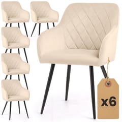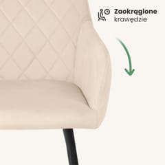 6x Welurowe krzesło tapicerowane pikowane w romby Beżowe VELTO Czarne nogi