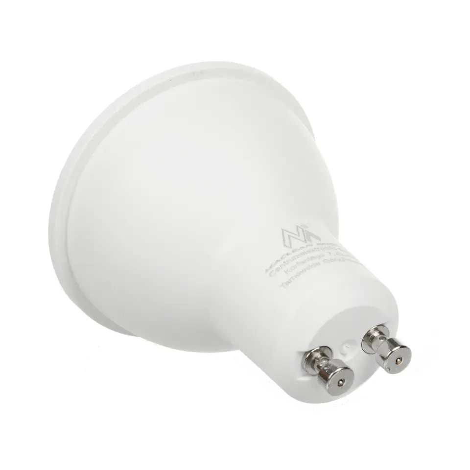 Wysokiej jakości energooszczędna żarówka LED o mocy 7W z mocowaniem opartym na gwincie GU10. Jest odpowiednikiem zwykłej żarówki o mocy 60W.Długa żywotność dochodząca do 20000 godzin kilkakrotnie przewyższa żywotność standardowej żarówki.