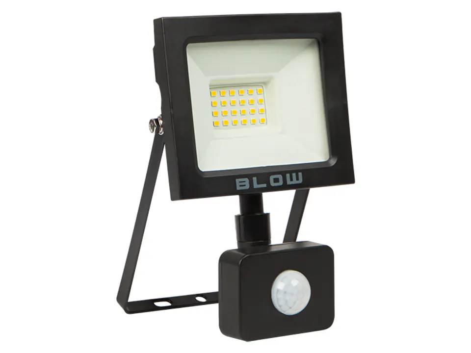 Naświetlacz marki BLOW został wykonany w technologii LED, dzięki czemu cechuje się świetnymi parametrami technicznymi. Diody umieszczone blisko siebie zapewniają silną wiązkę światła o szerokim kącie świecenia i równomiernym rozproszeniu. Dzięki technologii LED konstrukcja wykazuje również świetną energooszczędność, nieporównywalnie lepszą od tradycyjnych naświetlaczy halogenowych. Dodatkowo halogen został wyposażony w czujnik dzięki czemu może działać w trybie automatycznym. A takie parametry jak czułość czujnika ruchu, regulacja poziomu zmierzchu oraz czas świecenia możemy dostosować do indywidualnych potrzeb za pomocą trzech pokręteł.