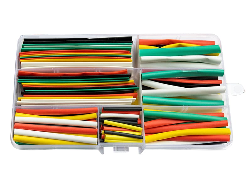 W zestawie znajduje się 140 szt. osłonek. Koszulki występują w 5 kolorach (czarnym, białym, czerwonym, zielonym i żłtym), dzięki czemu można w łatwy sposb oznaczyć, a następnie rozrżnić przewody. Swoje zastosowanie znajdą przede wszystkim podczas tworzenia izolacji kabli oraz wiązek przewodw elektrycznych. Koszulki wykonane zostały z poliolefiny, ktra jest elastyczna i wytrzymała na wysokie temperatury oraz antykorozyjna.
