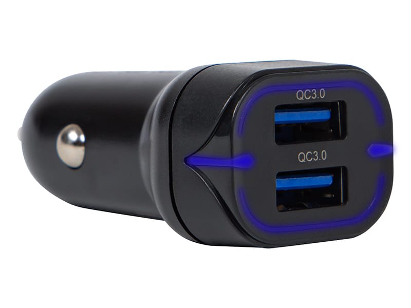 Kompaktowa ładowarka samochodowa z wbudowanymi gniazdami szybkiego ładowania USB. To wyjątkowe i nowoczesne urządzenie umożliwia ładowanie dwch urządzeń w jednym czasie. Charakteryzuje się ciekawym wzornictwem, estetyką wykonania oraz małymi wymiarami. Urządzenie zostało wykonane z materiałw przyjaznych dla środowiska i posiada zabezpieczenie przeciwprzepięciowe.