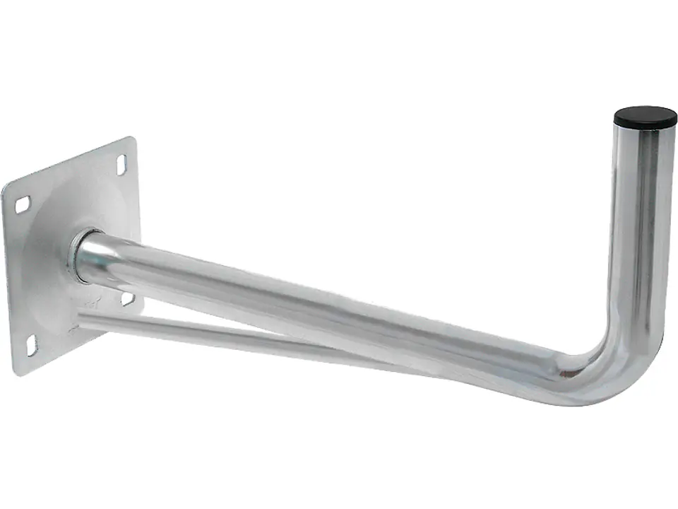 Najwyższej jakości maszt antenowy kątowy z czołowym montażem. Dbałość o każdy szczegół oraz najlepsza stal gwarantują, że uchwyt będzie odporny na panujące na zewnątrz warunki atmosferyczne przez wiele lat, a kapturek umiejscowiony na końcu rury zapobiega przedostaniu się wody do jej wnętrza. Maszt idealny do montażu każdego typu anten: naziemnej, satelitarnej, radiowej oraz internetowej. Maszt do montażu na elewacji, murze oraz innej płaskiej powierzchni.