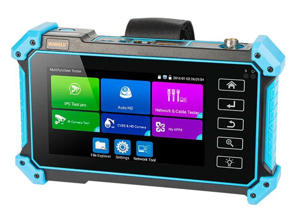 5 calowy tester kamer IP z ekranem dotykowym IPS przeznaczony jest do instalacji kamer IP, kamer analogowych ( AHD,CVI,CVBS,TVI) . Rozdzielczość ekranu wynosi 1920 * 1080 co umożliwia wyświetlanie kamer HD w wysokiej rozdzielczości. Urządzenie wspiera i obsługuje wiele protokołów takich jak ONVIF czy PTZ. Instalatorzy CCTV muszą mieć przy sobie różne narzędzia, aby sprawdzić czy udało się poprawnie wszystko podłączyć. Od tej pory wystarczy jeden tester do wszystkiego, który poprawi warunki pracy I zwiększy produktywność instalatorom monitoringu CCTV. Teraz wystarczy jedno urządzenie do wszystkiego, które znacząco poprawi komfort pracy i zwiększy wydajność, nie muszą oni mieć przy sobie różnych urządzeń.