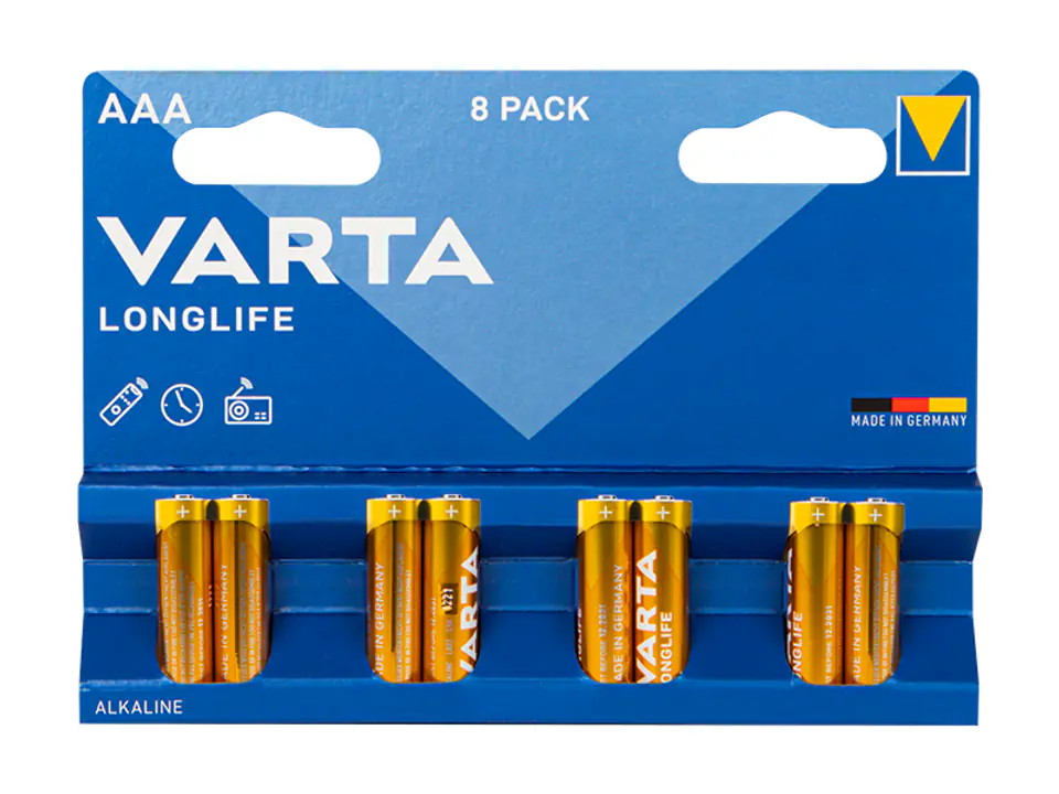 Wysokiej jakości osiem sztuk baterii alkalicznych znanej i cenionej marki VARTA z serii LONGLIFE doskonale sprawdzi się jako zasilanie do wielu urządzeń, w tym pilotów do telewizora i sprzętów muzycznych, zegarów ściennych, radioodbiorników i innych.