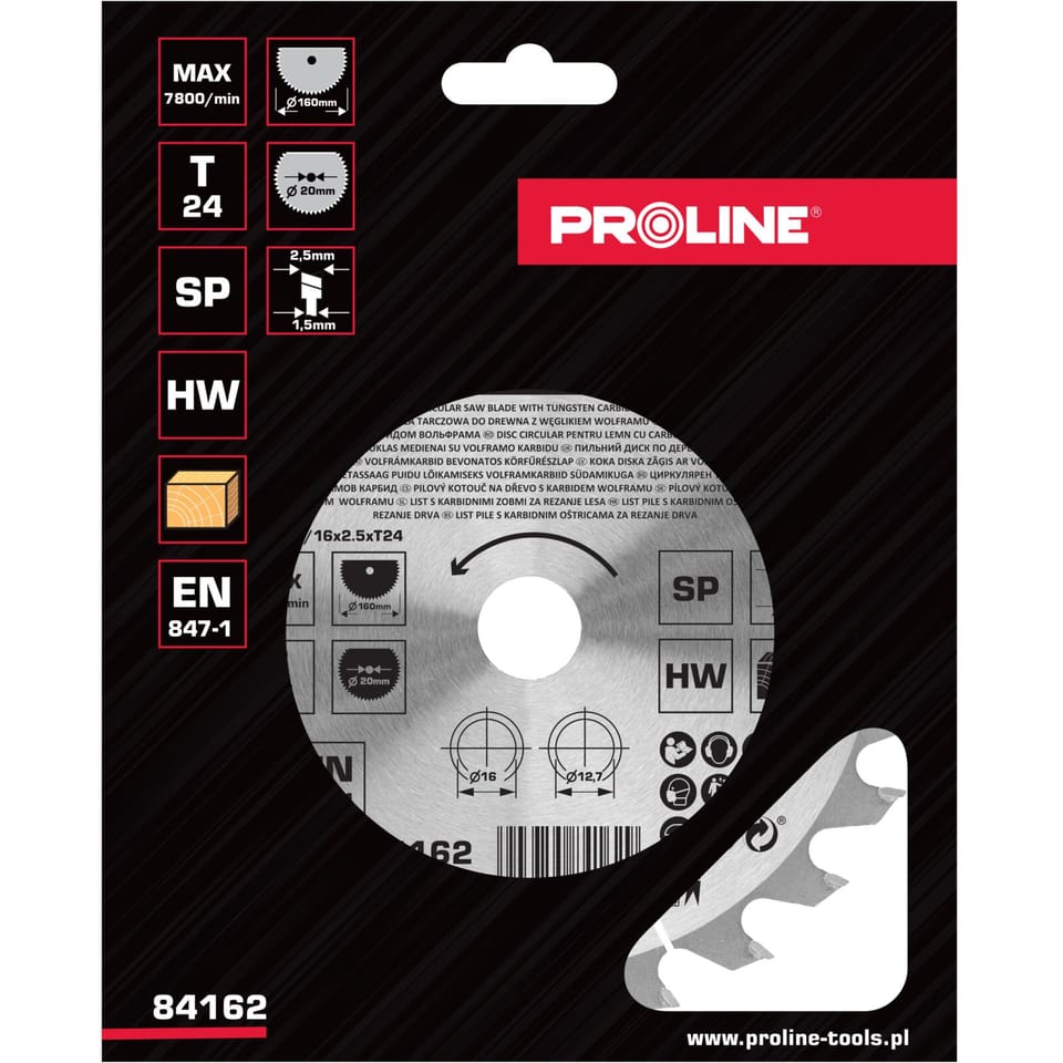 84162 Tarcza z węglikiem spiekanym do drewna 160mm, 24 zęby, Proline