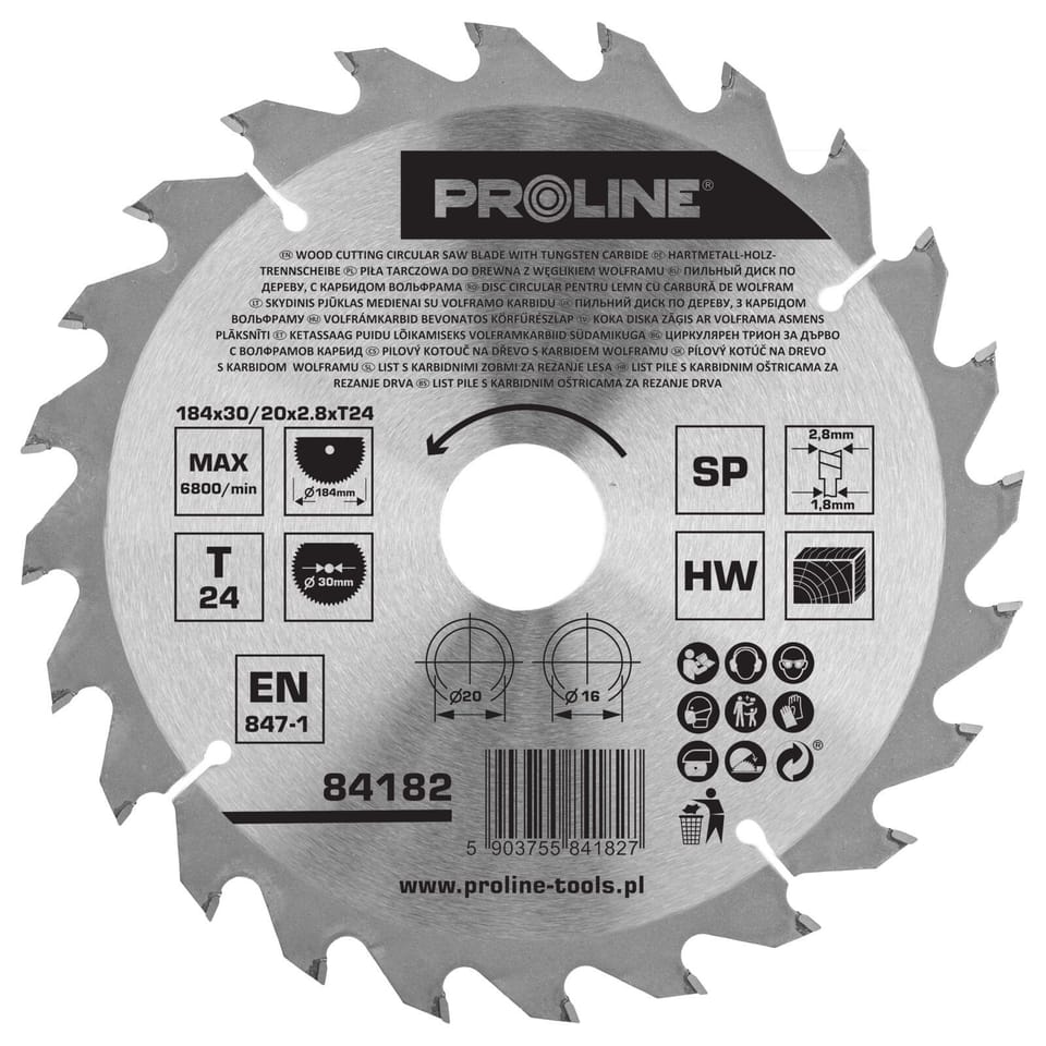84182 Tarcza z węglikiem spiekanym do drewna 184mm, 24 zęby, Proline