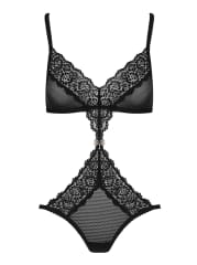 - koronka z kwiatowym motywem opływa ciało od biustu po brzuszek – niezwykle kuszący wygląd!