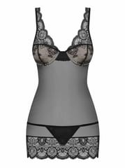 Wyobraź sobie poranek po gorącej nocy! Świat jest piękny, śmieje się do Ciebie! Ty jesteś jego boginią! Przeciągasz się, wstajesz, patrzysz w lustro! W tej koszulce wyglądasz nieziemsko! Twoje biodra opływa delikatny materiał, koronka podkreśla kształt Twoich piersi. O… Słyszysz? Nie tylko Ty się przebudziłaś… Czujesz jego wzrok na sobie i już wiesz, że ta noc będzie miała swoją kontynuację.Poznaj ją bliżej:- wyjątkowo kobieca koszulka z koronkowymi zdobieniami- koronkowy stanik z beżowym podszyciem – podkreśla dekolt- usztywniane miseczki z fiszbinami – idealnie eksponują biust!- regulowane ramiączka – możliwość perfekcyjnego dopasowania- gładki, elastyczny materiał podkreśla kształty ciała i zapewnia pełną wygodę noszenia- koronkowy dół podkreśla biodra- zestaw zawiera koszulkę i gładkie, czarne stringi- delikatna, przyjemna w dotyku tkanina (94% poliamid, 6% elastan)