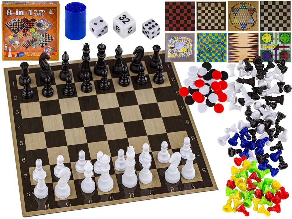 8w1 Gra Szachy Warcaby Chińczyk Zestaw Gier Planszowych